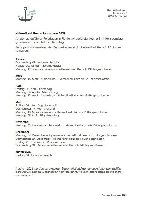 Jahresplan 2026
